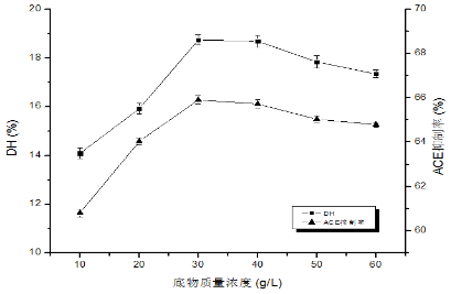 3.1.1底物濃度對酶解液ACE抑制率和水解度影響
