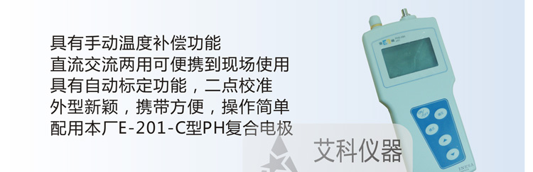 電位(mV)值,本儀器體積小,攜帶方便,特別適合于在無(wú)交流電源的地方作水溶液的酸度測(cè)定。